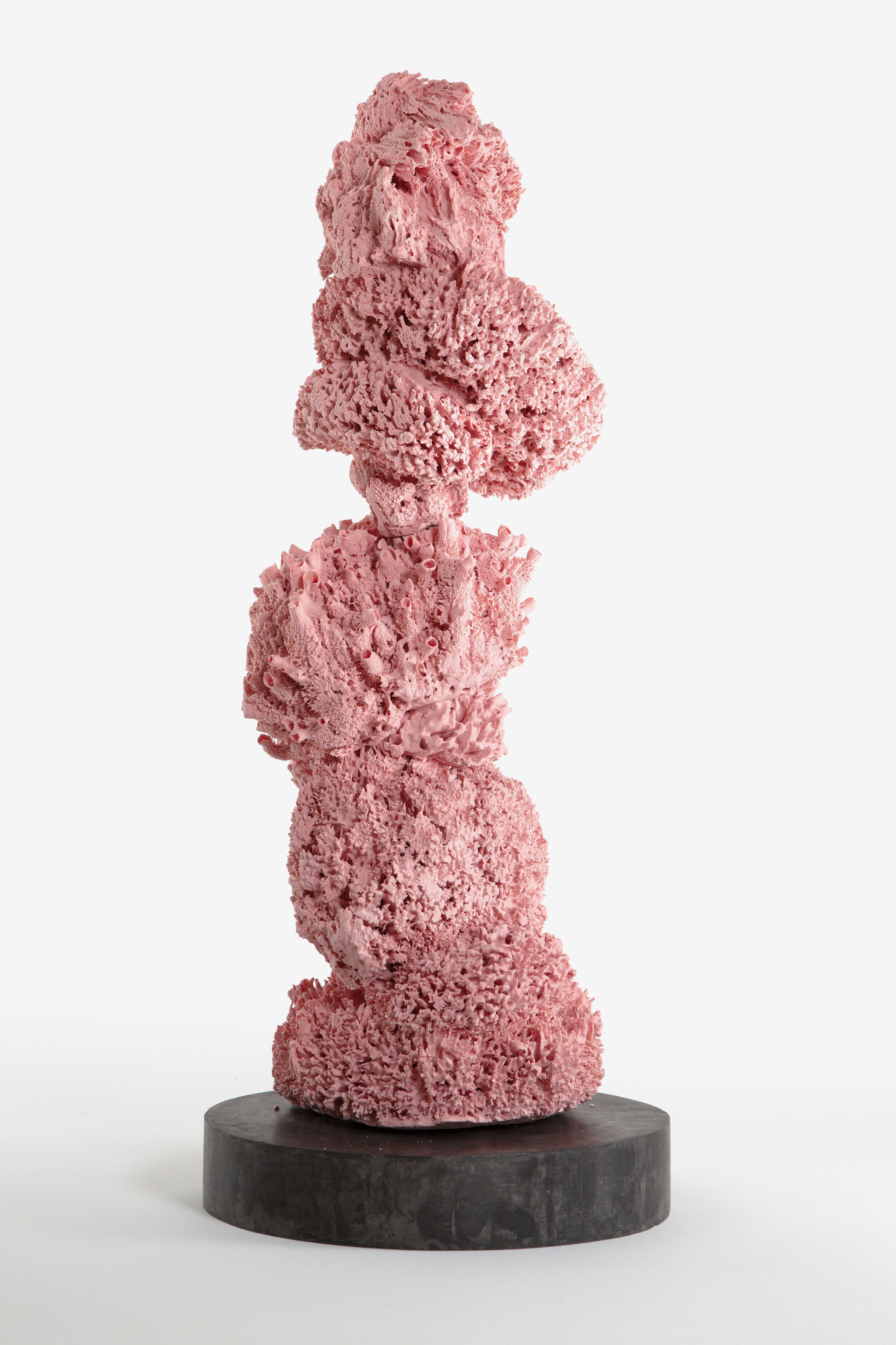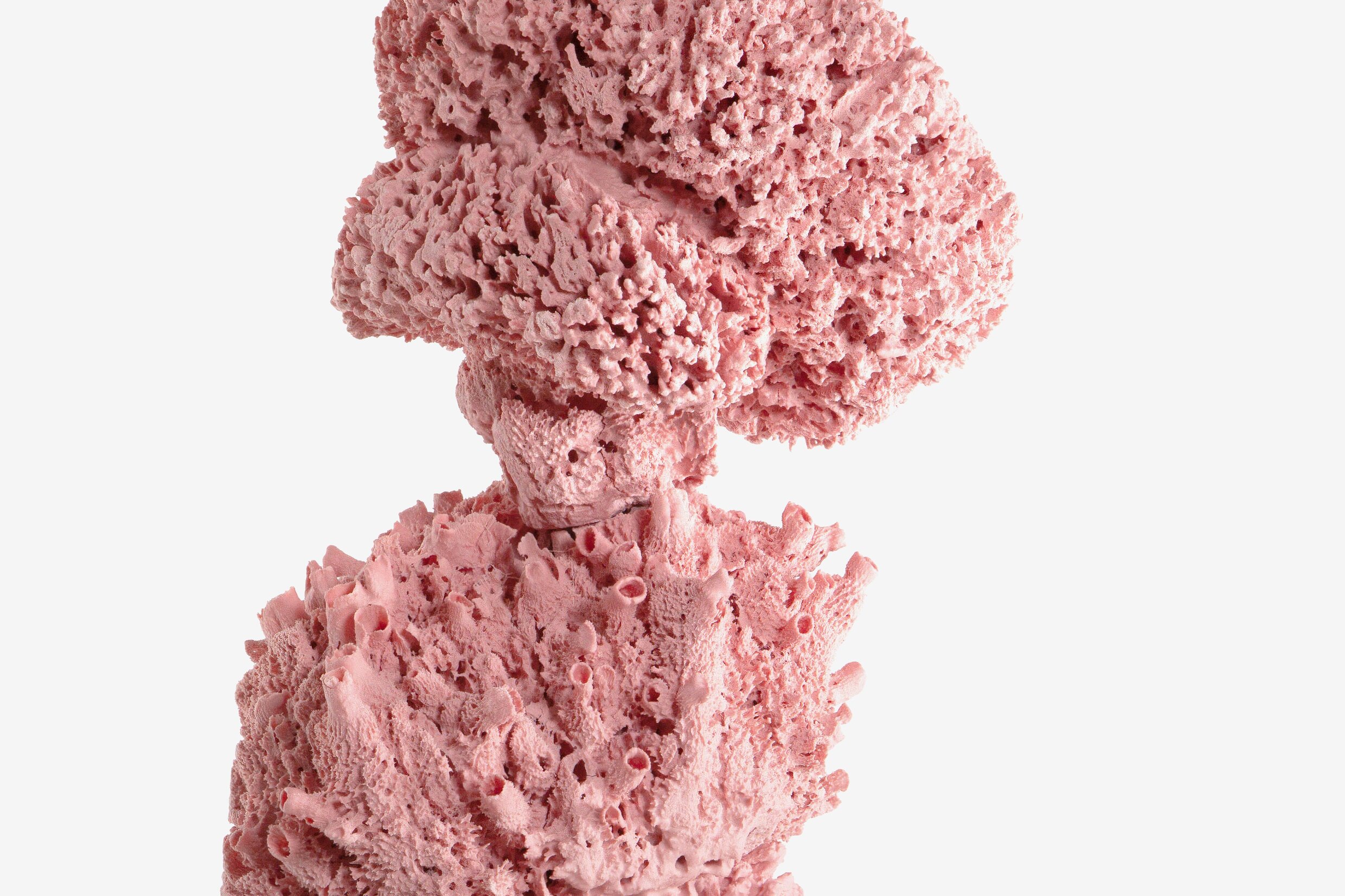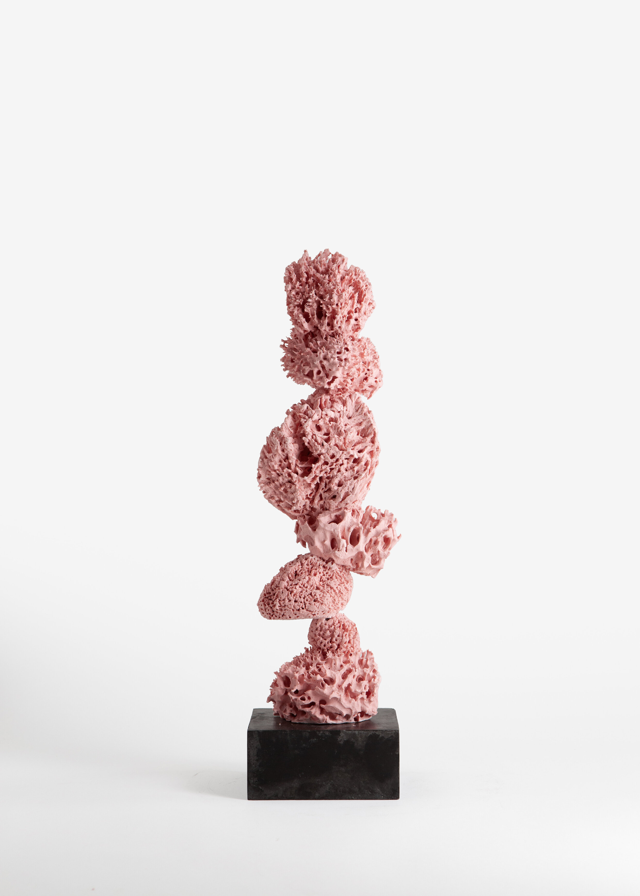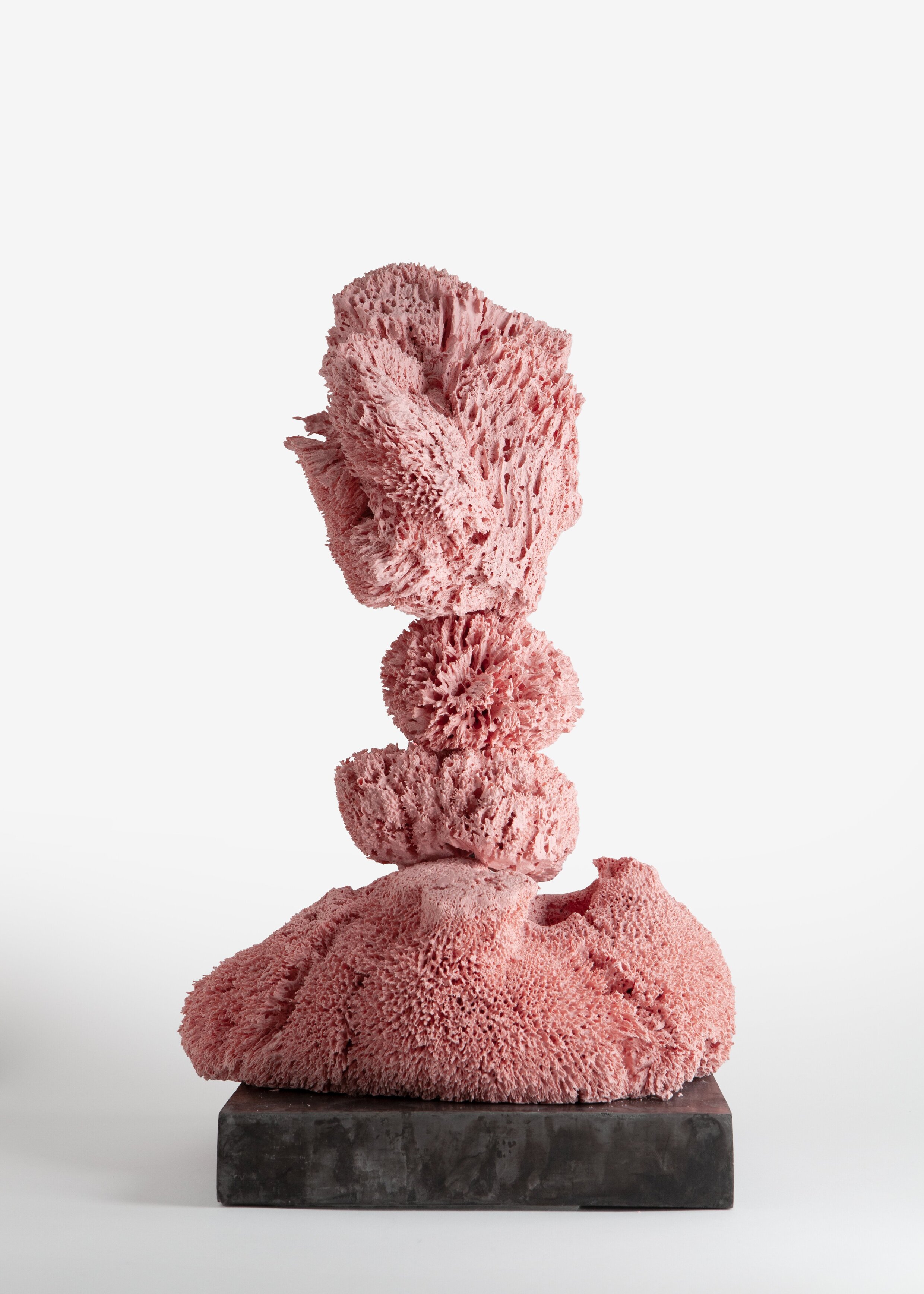 To make the works, the sponges have been painstakingly replicated; even the tiniest, most delicate details have been copied. Whether floating or assembled into a tower, they suggest a new urban landscape built on the principles of organic life.